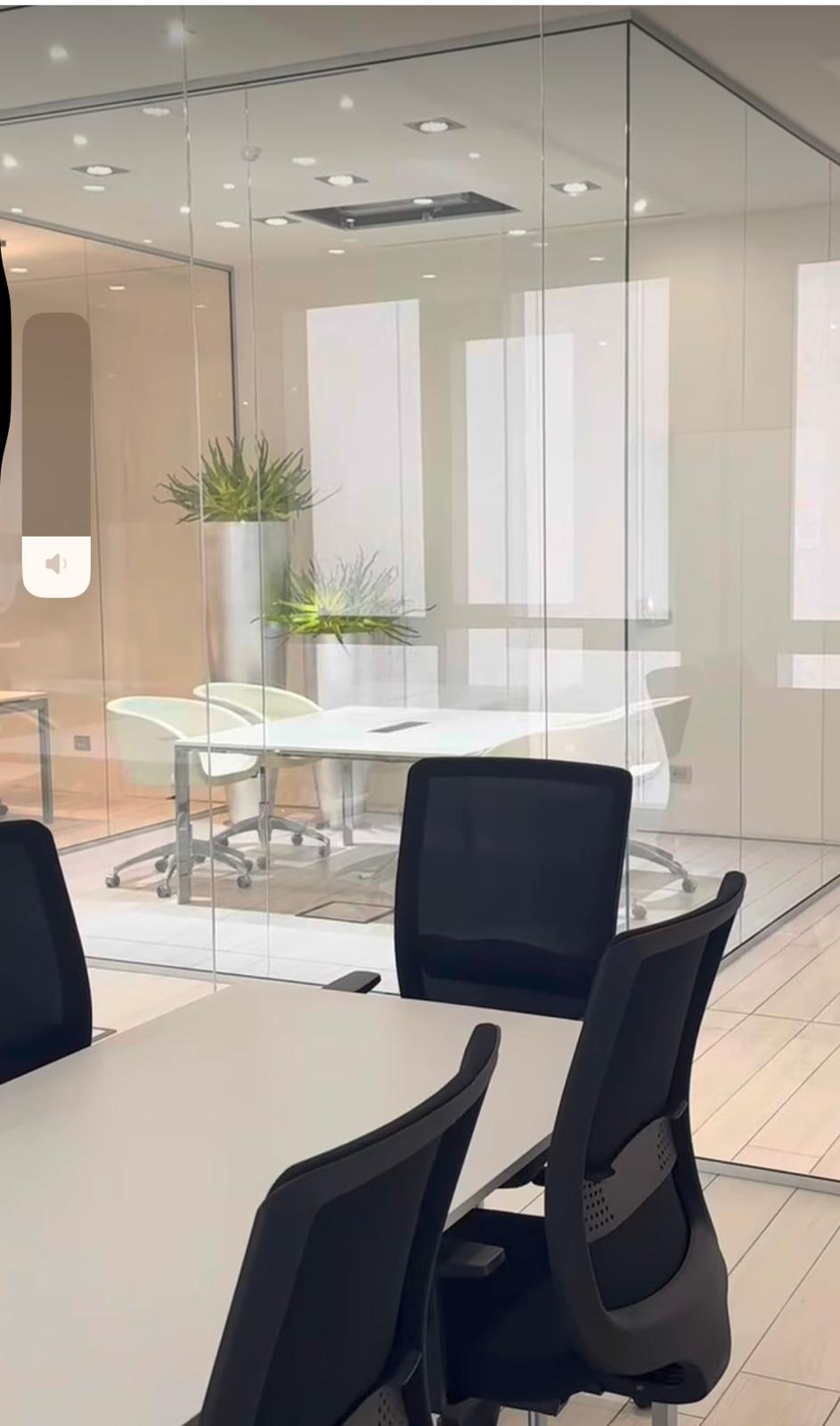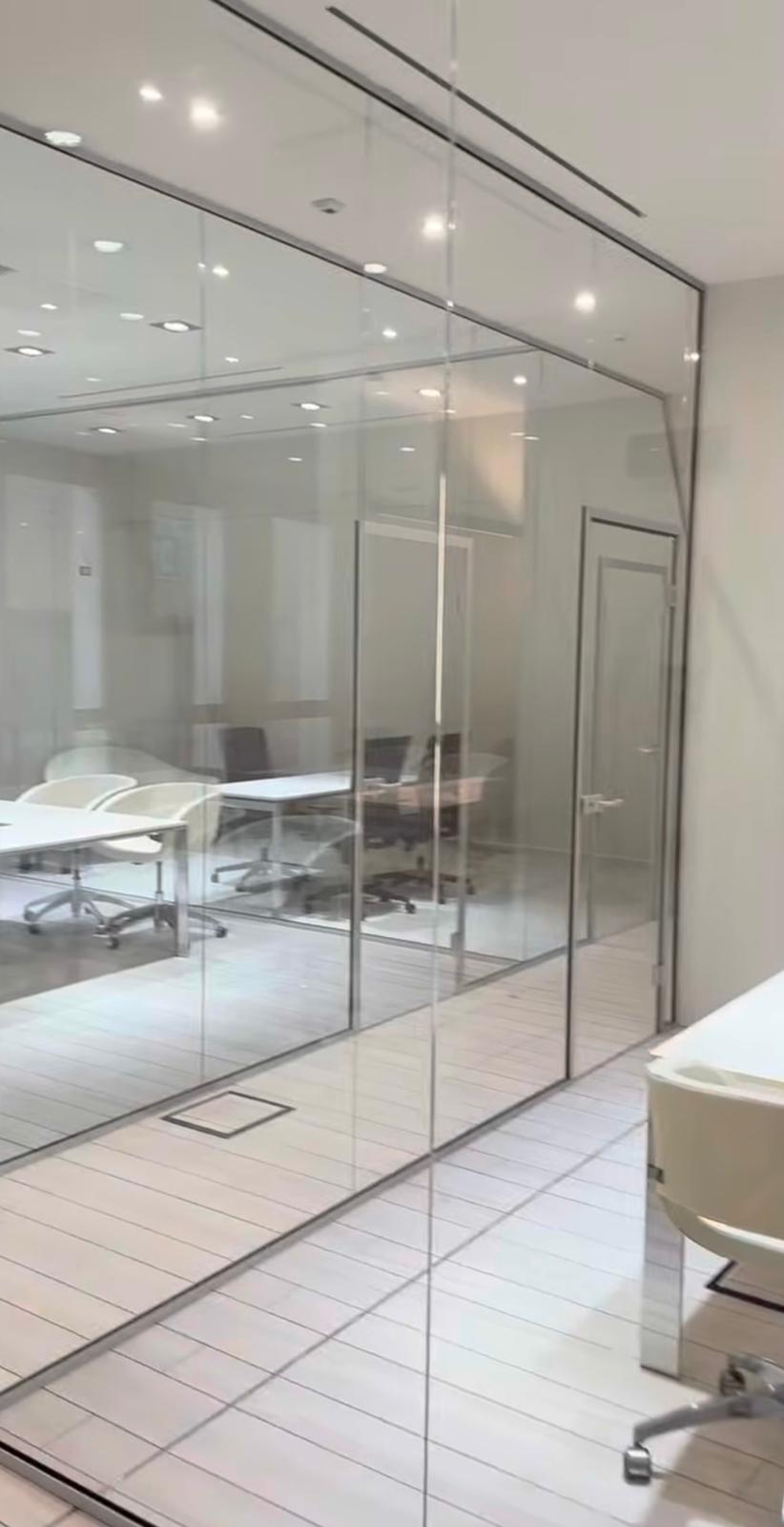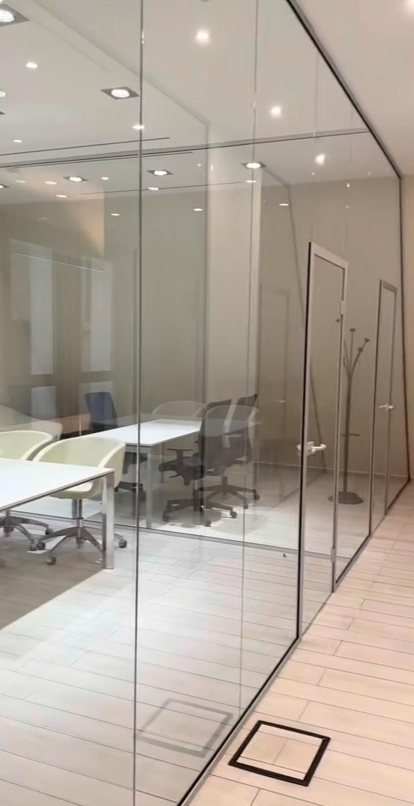 Pareti divisorie in vetro, ideali per uffici, abitazioni e negozi.